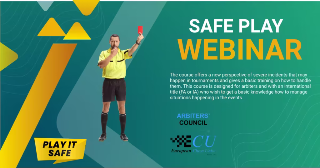 The course offers a new perspective of severe incidents that may happen in tournaments and gives a basic training on how to handle them. This course is designed for arbiters and with an international title (FA or IA) who wish to get a basic knowledge how to manage situations happening in the events.